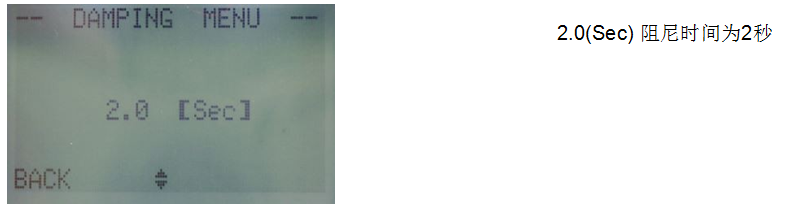 按鈕增加或減少變送器的阻尼時間(一般情況下,默認阻尼時間為 2 秒,用戶不需要對阻尼時間再設定)。